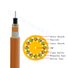 Au milieu du câble se trouve un élément central en FRP renforcé enveloppé d'une gaine LSZH, entourant la gaine se trouvent 12 unités de câble interne, chaque unité de câble interne est remplie de fil de Kevlar et de 12 tampons serrés. Le FRP et le fil de Kevlar agissent comme une force de tension de renforcement, si nécessaire, des bâtonnets de remplissage sont souvent utilisés à la place de l'unité de câble interne pour rendre la structure du câble plus stable. Pour rendre le câble étanche et compact, une couche de ruban adhésif imperméable enveloppe les 12 unités de câble ensemble. La gaine extérieure LSZH intègre tous les éléments ci-dessus pour former un câble à fibres optiques compact.