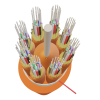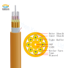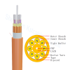 Au milieu du câble se trouve un élément central en FRP renforcé enveloppé d'une gaine LSZH, entourant la gaine se trouvent 8 unités de câble internes, chaque unité de câble interne est remplie de fil de Kevlar et de 12 tampons serrés. Le FRP et le fil de Kevlar agissent comme une force de tension de renforcement, si nécessaire, des bâtonnets de remplissage sont souvent utilisés à la place de l'unité de câble interne pour rendre la structure du câble plus stable. Pour rendre le câble étanche et compact, une couche de ruban adhésif imperméable enveloppe les 8 unités de câble ensemble. La gaine extérieure LSZH intègre tous les éléments ci-dessus pour former un câble à fibres optiques compact.