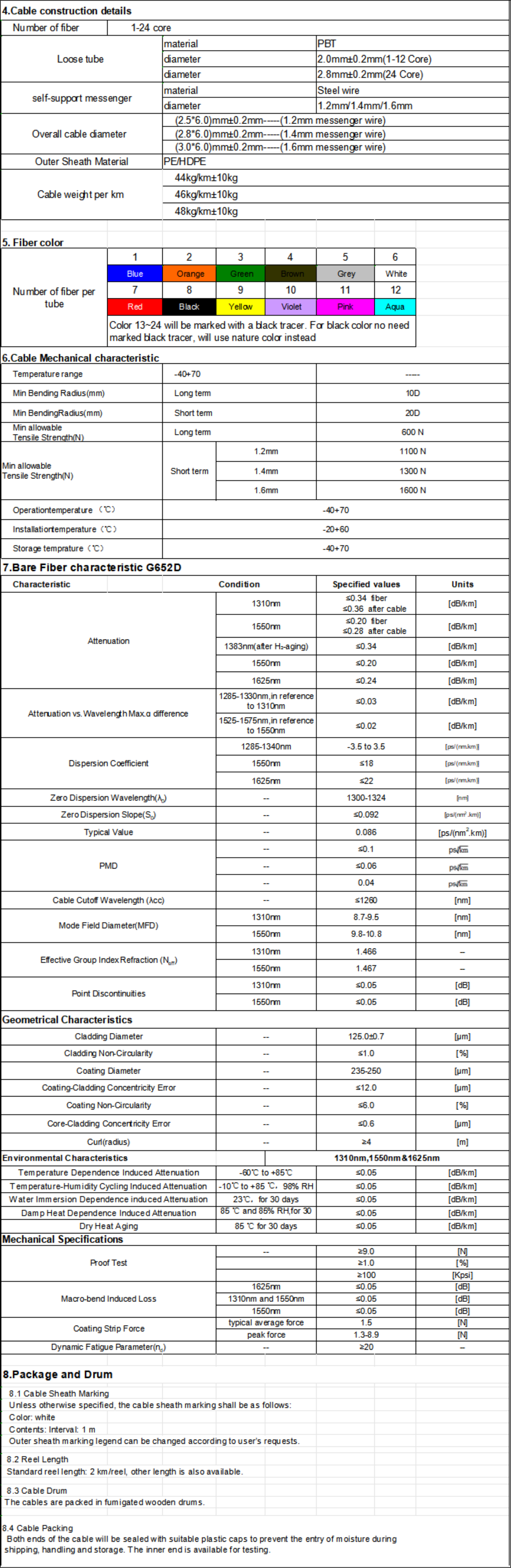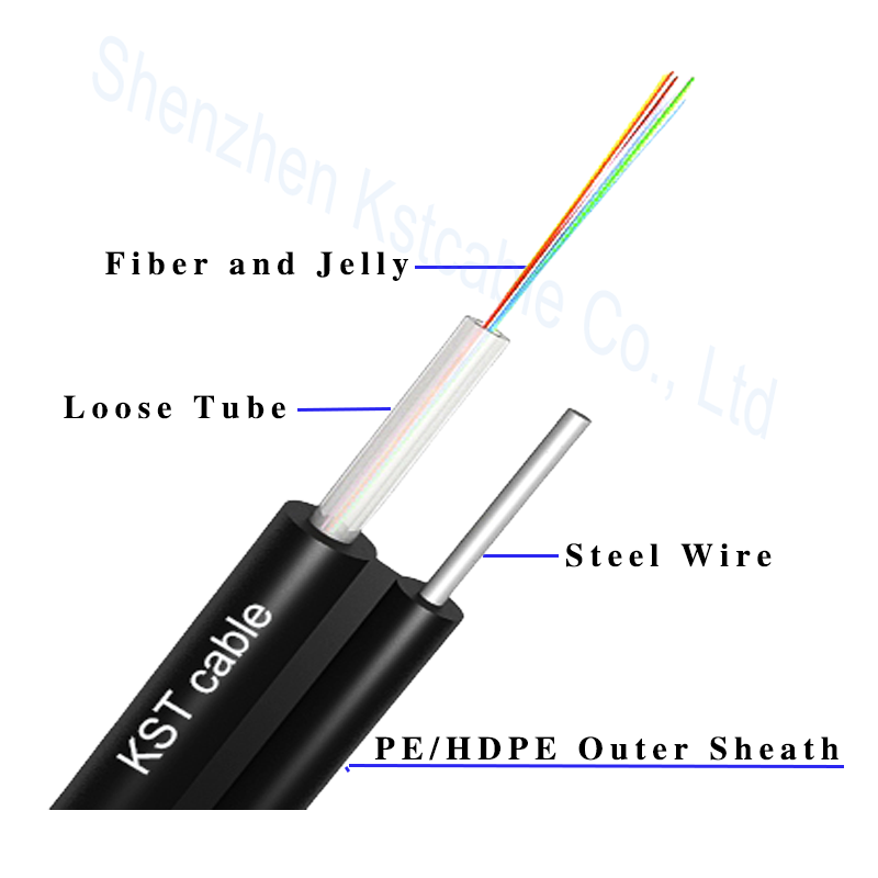 Avec la partie autoportante supplémentaire (un fil d'acier recouvert d'une gaine extérieure en PE/HDPE), le câble a une structure en forme de 8.